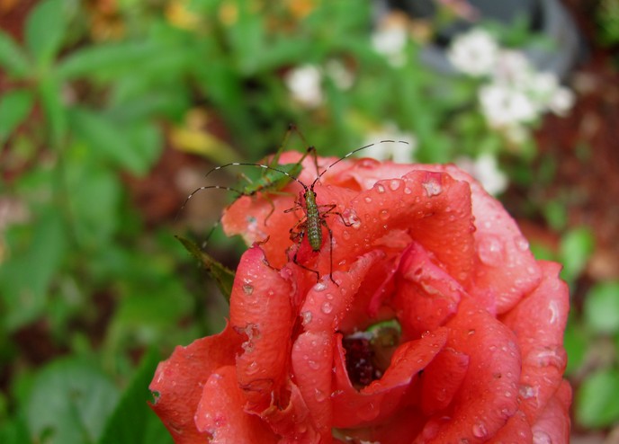 the other morning i noticed THIS weird looking bug attached to my car tire. actually, it was some kind of beetle molting (which are not uncommon)...BUT there was another pale-winged-big-eyed beetle type bug sitting on the back of the molting! i ran in the house...grabbed my camera...and took the shot!