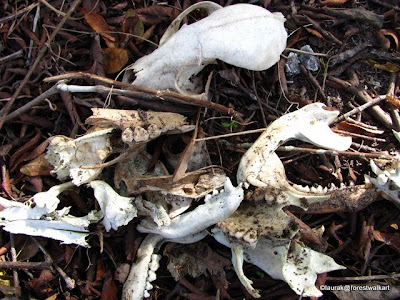 the pile of skull and jaw bones is intriguing, for sure. maybe someone picked up the skulls then decided they didn't want them and tossed 'em from the car?