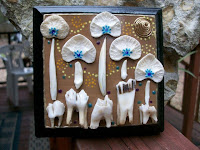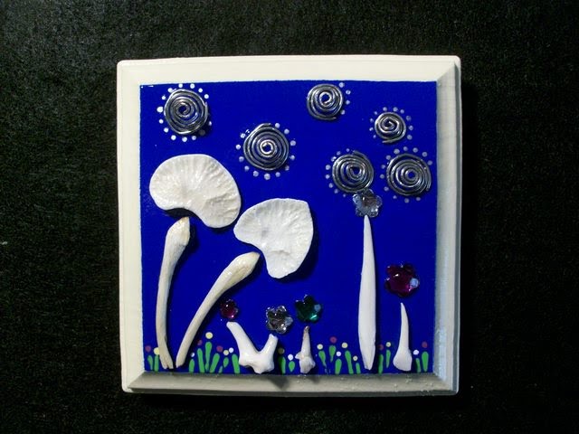 today i wanted to post a couple of my things...these are '3D, mixed media'...done on 4"x4" beveled wood grain plaques...which i paint...and proceed to create a 'Bone Garden". yep! the flowers are made of bone & teeth, the moons are wire i twisted into small spirals. i LOVE making these!! (i've sold one!) you might notice that "Planet Beenderen" is in the title name of these pieces (on etsy). while trying to come up with a creative name for these bone 'pictures'...i decided to look up the word BONE in different languages! i went with Dutch (since i have that in my blood)...Beenderen = Bones!!