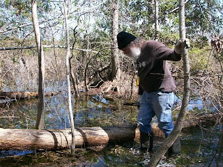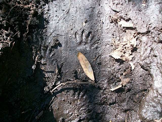i LOVE to go exploring! trudging into the woods out back...fighting my way through the vines, downed trees, swampy areas, spiderwebs and underbrush. sometimes i'll drag Sam out there with me. with a roll of his eyes...he'll get ready...long sleeve shirt, jeans, high rubber boots. we usually go on our deep wood explorations during the cooler weather...when the mosquitoes and ticks aren't STARVING for our BLOOD!