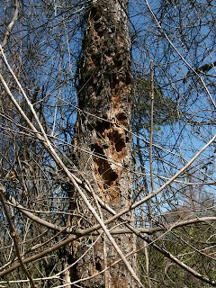 tree riddled with woodpecker holes...