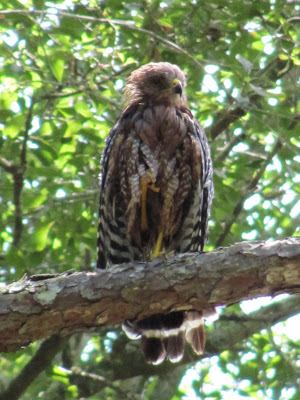 red shouldered hawk...all puffed-up...scratching his chest...