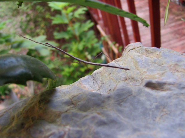 and here's another STICK BUG i spotted on the front porch. in fact, i had JUST said to sam...i wish i'd see another stick bug...i haven't gotten a picture of one in a while...i turned around...and there he was!!