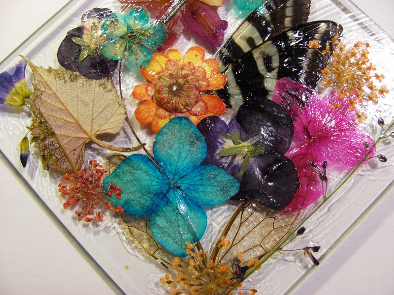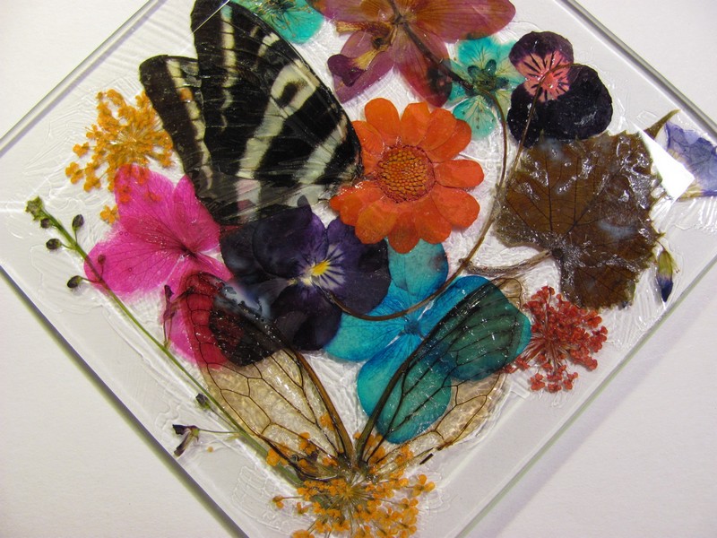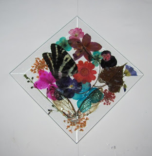 made of glass and decorated with butterfly & dragonfly wings...and pressed flowers.