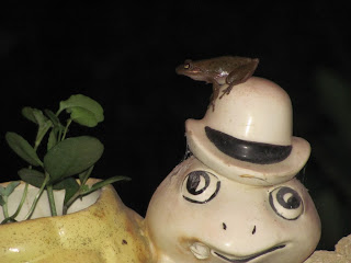 here he is, guarding the house...sitting on top of the turtle planter...
