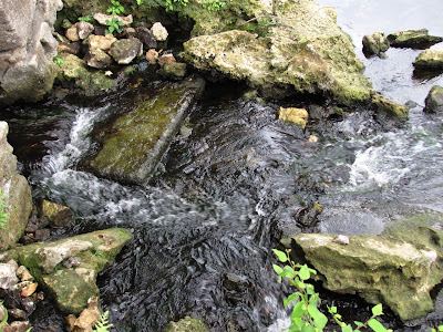 (an old crumbling wall around a natural spring)